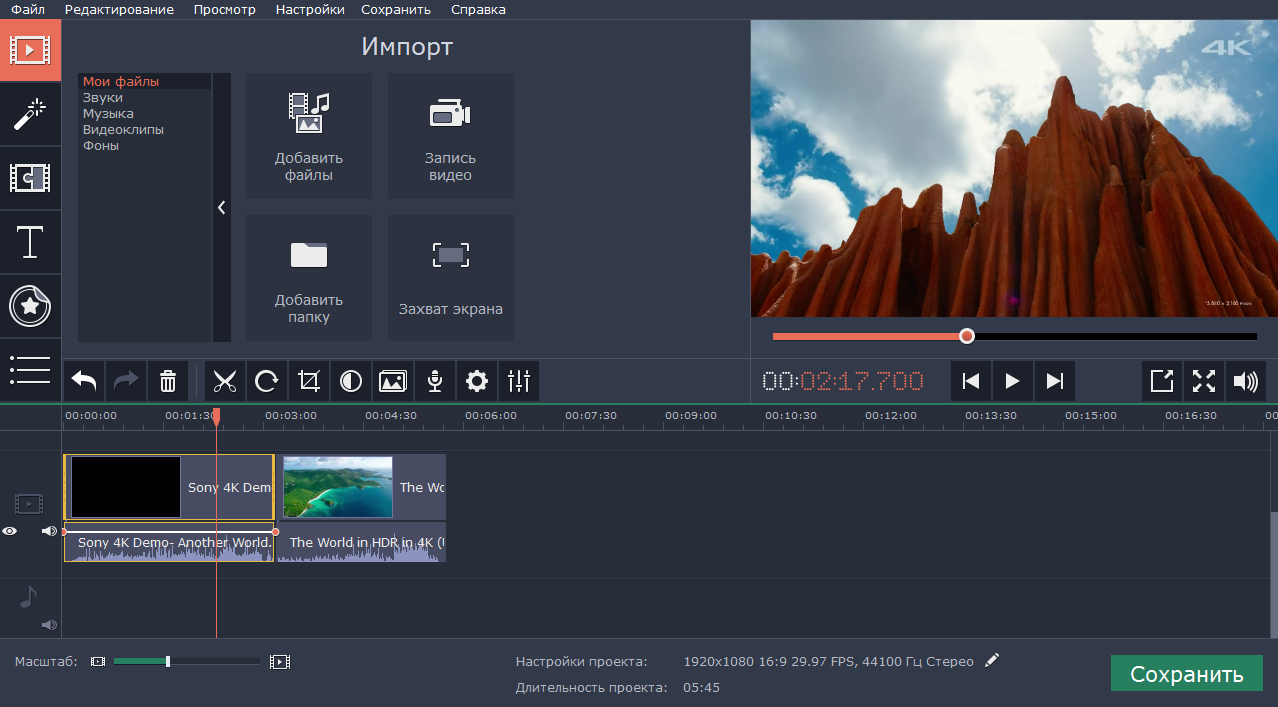 Как правило, залог хорошего ролика заключается в мелких деталях, эффектах, переходах, шрифтах и звуковом сопровождении. Без них смотреть видео даже с интересной информацией просто-напросто скучно, взгляду не за что зацепиться. Компания Movavi представила магазин эффектов для своих программ. В нем уже есть 3 тематических пакета: 'Путешествия', 'Семейный' и 'Времена года'. Все они обязательно украсят ваше видео, сделают его оригинальным и узнаваемым. В каждый набор входят: Переходы; Фоны; Титры; Стикеры; Аудиофайлы. Одной из программ, которая поддерживает новые наборы, является Movavi Video Suite. С ее помощью любой даже неопытный пользователь сможет создать красивое профессиональное видео. В программе вы можете создать фильм из набора видео и фото, слайдшоу, захватить видео с экрана, смонтировать инструкцию по использованию какой-либо программы или записать себя на web-камеру для поздравительной открытки или поста в соцсеть. Всё ограничивается лишь вашей фантазией...