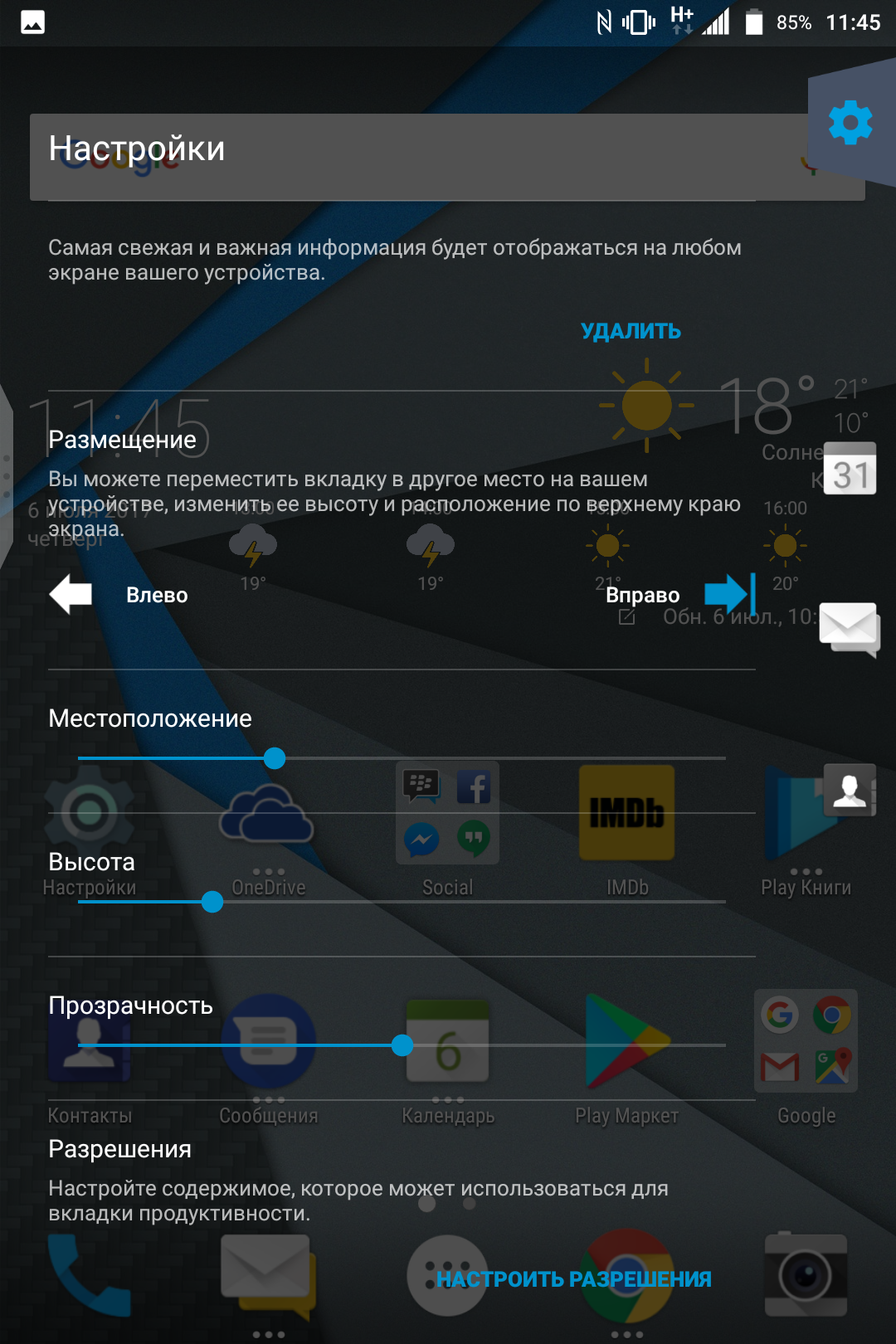 'Вкладка продуктивности', которая напоминает Edge-панель в смартфонах Samsung существенно видоизменилась. Она состоит из трех вкладок, в ней отображаются текущие события из календаря, включая задачи, сообщения из BlackBerry Hub и недавние вызовы. Положение, размер и прозрачность ярлыка на краю экрана можно регулировать. При желании ее можно выключить:
